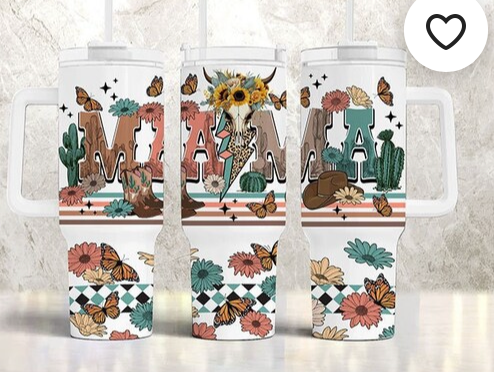 40 OZ TUMBLERS WITH HANDLES. GREAT FOR HOT AND COLD. HOLD ICE ALL DAY. NARROW BOTTOMS ALLOWS FOR TUMBLER TO FIT IN ANY CAR CUP HOLDER! PLEASE HAND WASH. NOT DISHWASHER SAFE