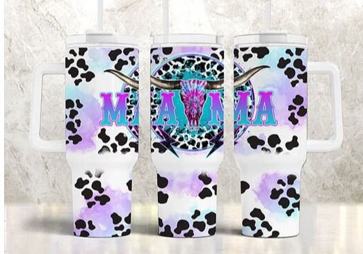 Mama Cowprint Teal 40 oz Tumbler